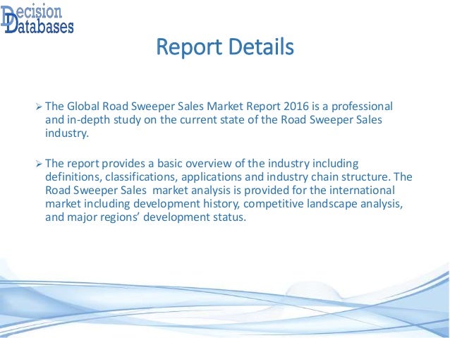 Report Information More information from: https://www.wiseguyreports.com/reports/466677 Global Road Sweeper Industry 2016 Market Research Report ... Access Content